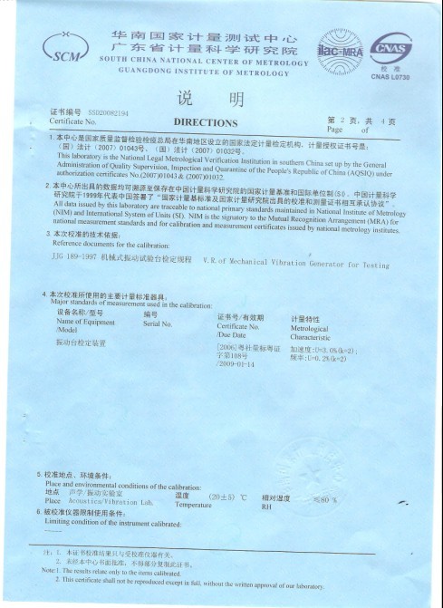 >>振動試驗臺校準證書-廣東計量院-ABB集團