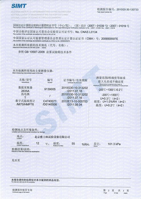 鹽霧腐蝕試驗箱檢測報告-上海計量院-吉誼汽車
