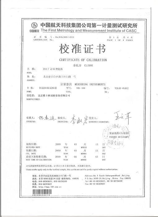 >>恒溫恒濕試驗箱校準(zhǔn)證書-航天計量-中國火箭研究院
