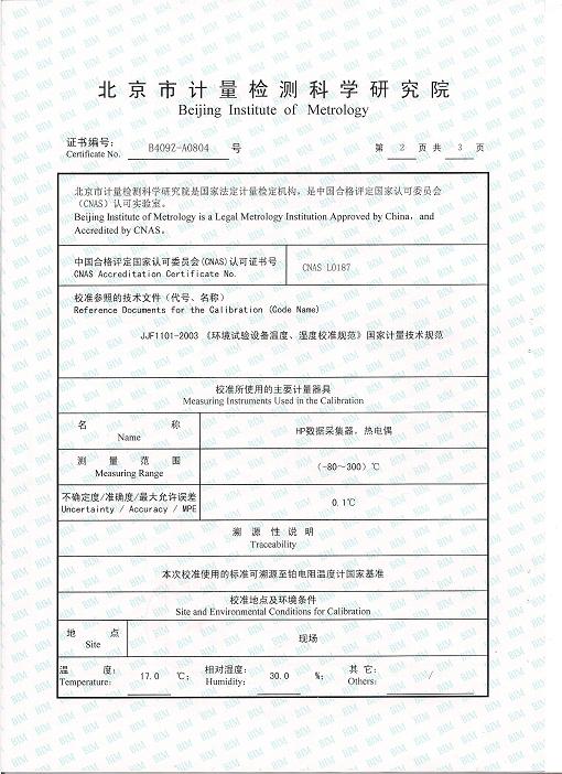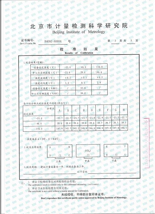 高低溫交變濕熱試驗箱校準證書-北京計量院-拉特激光
