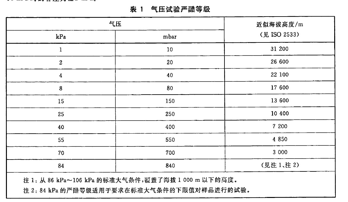 上圖是GB/T2423.21-2008中規(guī)定的氣壓試驗等級。地球大氣受重力作用,離地面越高,空氣越稀薄,氣壓也就越低。在標(biāo)準(zhǔn)大氣條件下,海平面氣壓約為 101.3kPa 。隨著海拔上升,氣壓呈非線性下降趨勢。這是因為大氣并非均勻分布,越往高空,空氣分子數(shù)量越少,分子撞擊物體表面產(chǎn)生的壓力也就越小。